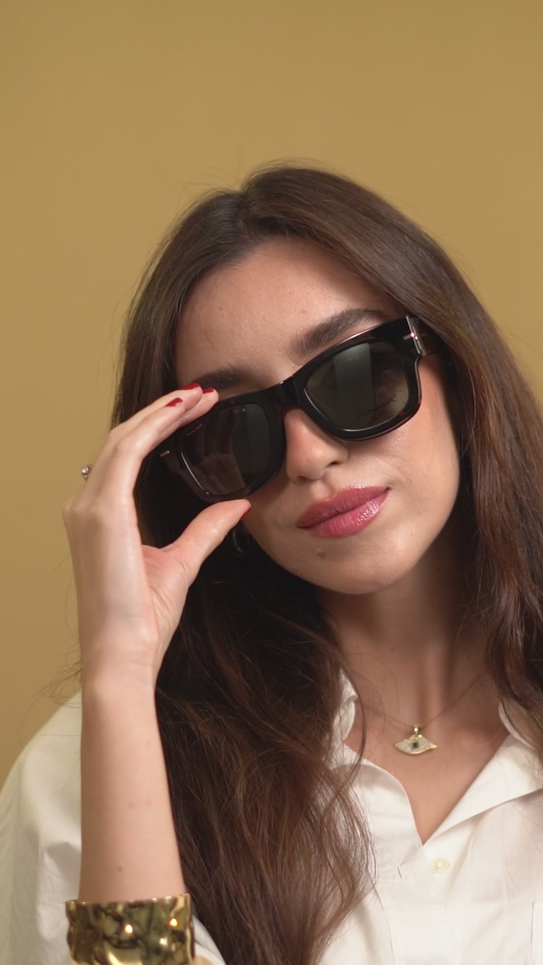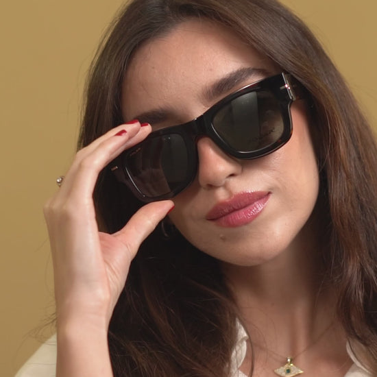 - Forme : oversize rectangulaire / wayfarer moderne avec clip solaire intégré